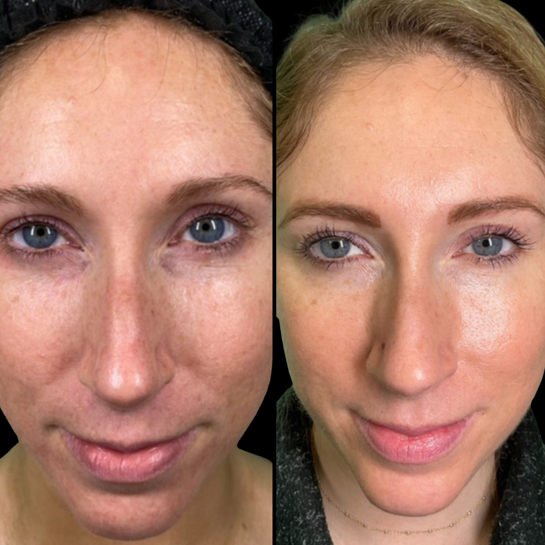 You may experience mild swelling or pinpoint redness, which resolves quickly. Because the results come from your own growth factors, improvement develops gradually over several weeks.