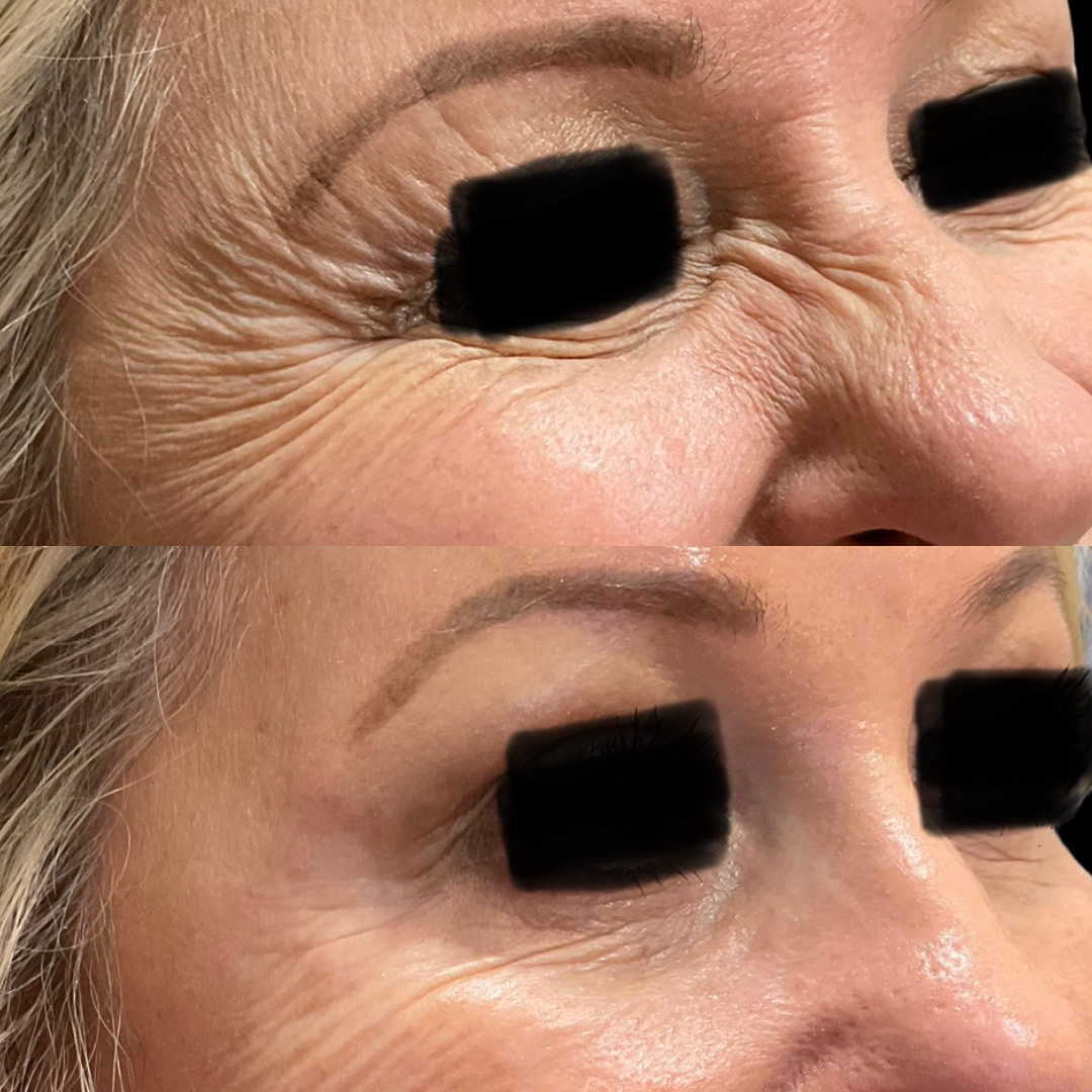 Results begin to appear within 3–5 days and continue to improve over 1–2 weeks. You may experience slight redness or pinpoint swelling at injection sites, which resolves quickly. Results typically last 3–4 months.